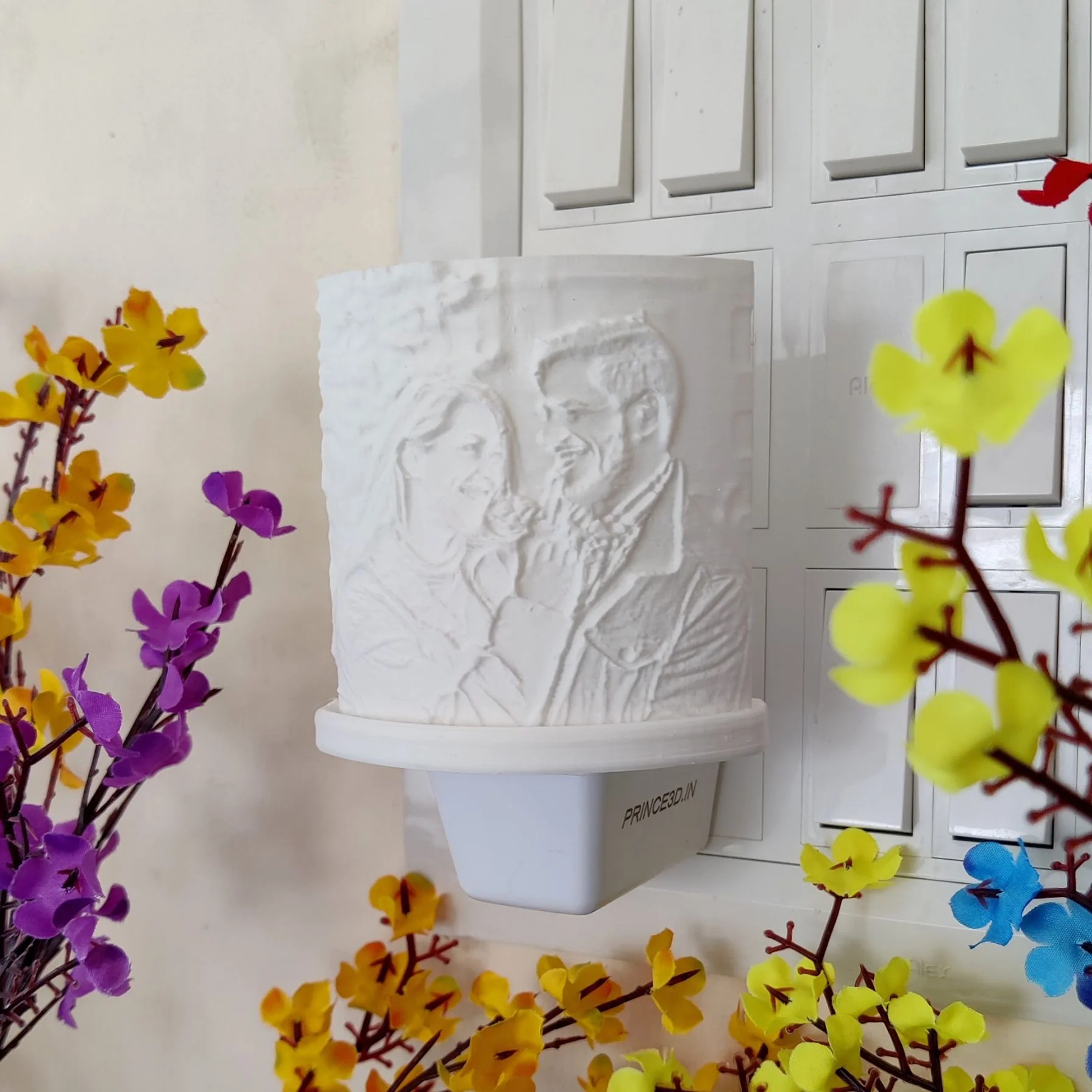 A beautifully crafted 3D printed night lamp featuring your favorite photo, creating a warm and personalized glow. This lamp is perfect for adding a personal touch to any room and makes an excellent gift for any occasion.